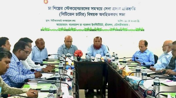 সেবা প্রদান প্রতিশ্রুতি(সিটিজেন চার্টার) কর্মপরিকল্পনা যথাযথভাবে বাস্তবায়নের লক্ষ্যে চা শিল্পের স্টেকহোল্ডারদের নিয়ে বাংলাদেশ চা গবেষণা ইনস্টিটিউটের অবহিতকরণ সভা অনুষ্ঠিত হয়েছে। ১৬ মে (মঙ্গলবার) গণপ্রজাতন্ত্রী বাংলাদেশ সরকারের বাণিজ্য মন্ত্রণালয়াধীন বাংলাদেশ চা