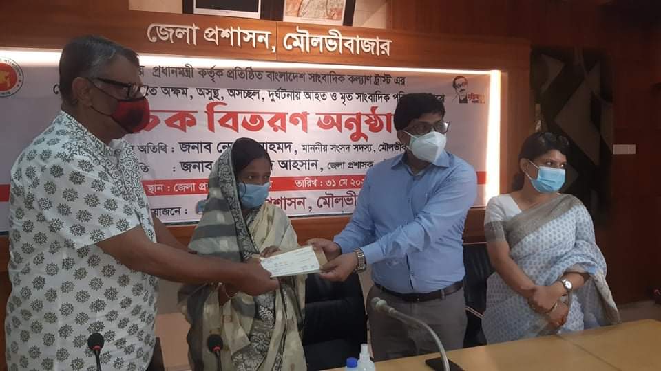 সাংবাদিক পারিবারকে কল্যাণ ট্রাস্টের চেক হস্তান্তর করেন মৌলভীবাজার জেলা প্রশাসক