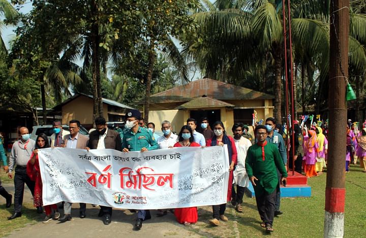 ‘সর্বত্র বাংলা ভাষার শুদ্ধ ব্যবহার চাই’—এই স্লোগান নিয়ে বরিশালে বর্ণমিছিল অনুষ্ঠিত হয়েছে। আজ বুধবার দুপুরে বরিশাল নগরের রুপাতলীর কালিজিরা এলাকায় এই মিছিলের আয়োজন করে সামাজিক ও সাংস্কৃতিক সংগঠন দুঃসাহসী। সামাজিক