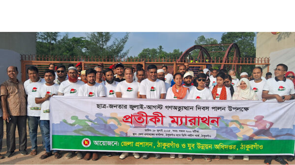 ঠাকুরগাঁওয়ে ছাত্র- জনতার জুলাই-আগস্ট গণ অভ্যুত্থান দিবস পালন উপলক্ষে প্রতিকী ম্যারাথন অনুষ্ঠিত হয়েছে। শুক্রবার (১৮ জুলাই) জেলা প্রশাসক ইশরাত ফারজানা’র সভাপতিত্বে জেলা প্রশাসন ও যুব উন্নয়ন অধিদপ্তর ঠাকুরগাঁও জেলার আয়োজনে