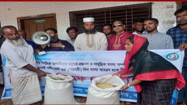 খুলনার কয়রা উপজেলার মহারাজপুর ইউনিয়নে জেলেদের মাঝে ভিজিএফ’র চাল বিতরণ করা হয়েছে। চলতি অর্থবছরে মৎস্য আহরণ থেকে বিরত থাকা মহারাজপুর ইউনিয়নের ১ হাজার ৬০ জন কার্ডধারী জেলেদের মাঝে চাল বিতরণ