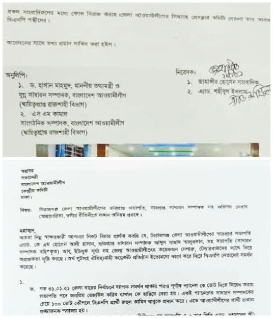 স্টাফ রিপোর্টার: সিরাজগঞ্জ জেলা আওয়ামী লীগের ভারপ্রাপ্ত সভাপতি ওসাধারণ সম্পাদকের স্বেচ্ছাচারিতা, দলের রীতি-নীতি লঙ্ঘন ও অনিয়মের বিরুদ্ধে দলীয় সভানেত্রী প্রধানমন্ত্রী শেখ হাসিনার কাছে লিখিত অভিযোগ করেছেন স্থানীয় নেতা-কর্মীরা। জেলা আইনজীবি