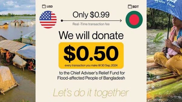 আমেরিকান পেমেন্ট সার্ভিস প্রিয় পে’র মাধ্যমে টাকা উত্তোলনের ফি থেকে অর্ধেক অর্থ বন্যার্তদের সহায়তায় দেওয়া হবে। প্রিয় পে থেকে বাংলাদেশের ব্যাংকগুলোতে টাকা উত্তোলনে ৯৯ সেন্ট খরচ হয়, এর থেকে ৫০