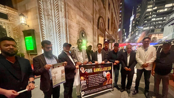 বাংলাদেশের বর্তমান অরাজক পরিস্থিতির পরিপ্রেক্ষিতে মুক্তিযুদ্ধ, ৭২ র সংবিধান, আইনের শাসনের প্রতিষ্ঠা ও আদালত এবং আইনজীবীদের মর্যাদা রক্ষার্থে- কক্ষপথ -৭১ এর আয়োজনে নিউইয়র্কের বাংগালি অধ্যশিত জুইস সেন্টারে এক প্রতিবাদ সমাবেশ