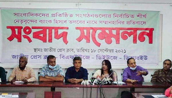 স্টাফ রিপোর্টার: সাংবাদিকদের মনে ভয় সৃষ্টি করতেই সাংবাদিক নেতাদের ব্যাংক হিসাব তলব করা বলে মনে করছেন সাংবাদিক সংগঠনগুলোর নেতারা। এ ঘটনার প্রতিবাদে রোববার দুপুর ১২টায় জাতীয় প্রেস ক্লাবের সামনে সমাবেশের