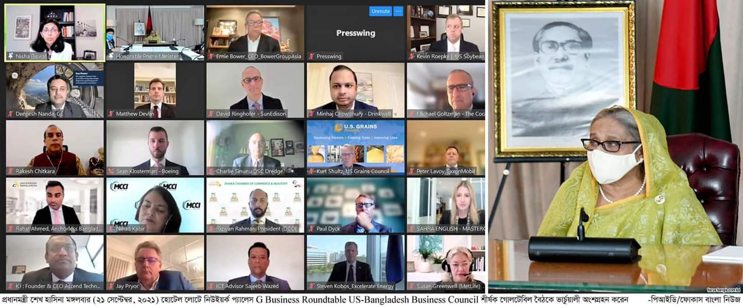 যুক্তরাষ্ট্র অফিস: প্রধানমন্ত্রী শেখ হাসিনা বাংলাদেশের বিভিন্ন প্রতিশ্রুতিশীল খাত যেমন আইসিটি, নবায়নযোগ্য জ্বালানি, কৃষি-প্রক্রিয়াকরণ, নীল অর্থনীতি, পর্যটন ও হাইটেক পার্কের জন্য মার্কিন বিনিয়োগের আহ্বান জানিয়েছেন। বুধবার এক ব্যবসায়িক গোলটেবিল বৈঠকে
