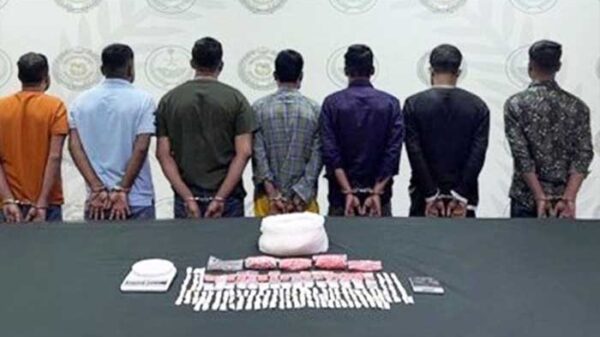 সৌদিতে মাদকবিরোধী অভিযান চালিয়ে ১২ বিদেশি ও ২ সৌদি নাগরিককে আটক করেছে পুলিশ। মাদক চোরাচালান ও চোরাচালানের সঙ্গে জড়িত গ্রেপ্তার ১৪ জনের মধ্যে ৭ জন বাংলাদেশি। সৌদি আরবের জেদ্দা ও