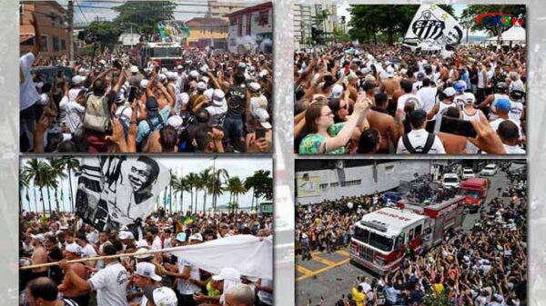 ব্রাজিলের কিংবদন্তি পেলের অন্তিমযাত্রা স্থানীয় সময় সকাল সাড়ে ১০টার পর শুরু হয়। কিন্তু রাস্তার দুইপাশে লাখো মানুষের ভীড়ের মধ্য দিয়ে শম্ভুক গতিতে চলছে তার শবযাত্রা। ভক্ত-সমর্থকরা শেষবারের মতো বিদায় জানাচ্ছেন