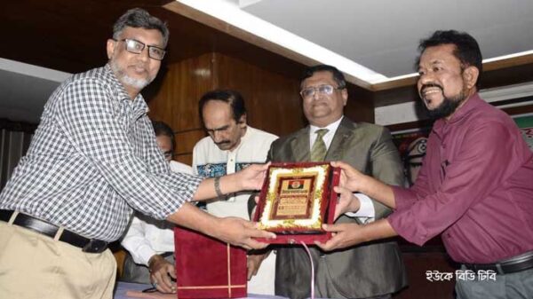 মৌলভীবাজার পৌরসভার নুরুজ্জামানের সম্মাননা ক্রেস্ট গ্রহন