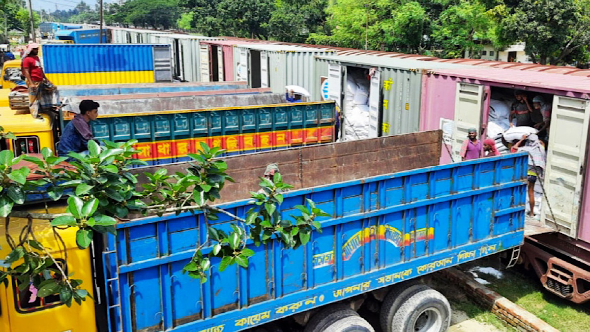 যশোর রেলস্টেশনে শেড না থাকায় খোলা আকাশের নিচে খালাস হচ্ছে পণ্য