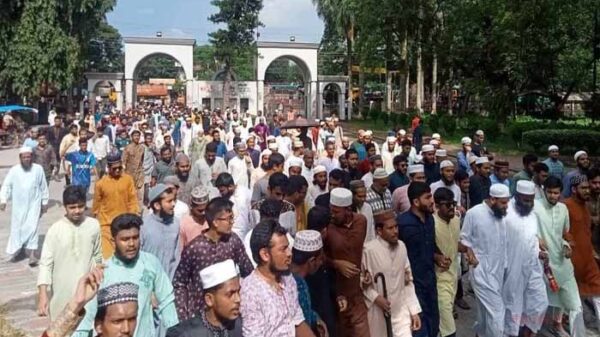 সম্প্রতি ভারতীয় পুরোহিত কর্তৃক বিশ্বনবী মুহাম্মদ (সা.) কে নিয়ে কটুক্তি এবং এ ঘটনায় বিজেপি নেতার সমর্থনের প্রতিবাদে বিক্ষোভ মিছিল ও সমাবেশ করেছে ইসলামী বিশ্ববিদ্যালয়ের (ইবি) শিক্ষার্থীরা। শুক্রবার (২৭ সেপ্টেম্বর) দুপুর