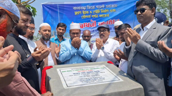 পঞ্চগড় জেলার বাংলাবান্ধা জিরো পয়েন্টে জাতীয় পতাকার স্ট্যান্ডের ভিত্তিপ্রস্তর স্থাপনসহ একটি গেট নির্মাণ ও সৌন্দর্যবর্ধন কাজের শুভ উদ্বোধন করেছেন পঞ্চগড় জেলার জেলা প্রশাসক সাবেত আলী। শনিবার (১৯ এপ্রিল) দুপুরে এই