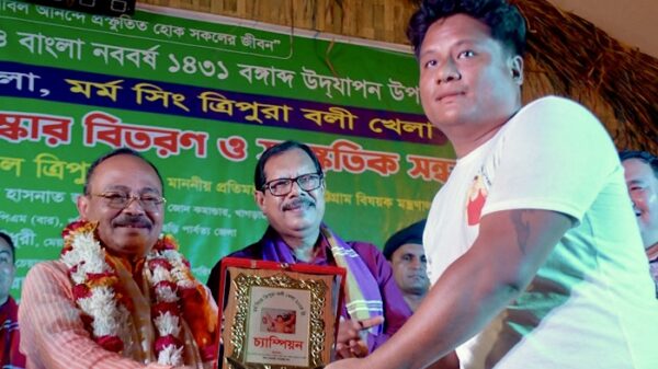 ত্রিপুরাবাসীকে সাহসী মনোভাব নিয়ে ঐক্যবদ্ধ হয়ে নিষ্ঠার সাথে, সততার সাথে, মানবিক গুণাবলী দিয়ে দেশের কল্যাণে ঐক্যবদ্ধ হতে হবে। তিনি আরও বলেন, বিশ্বের অন্যান্য জাতির সাথে তাল মিলিয়ে নিজস্ব খেলাধুলা
