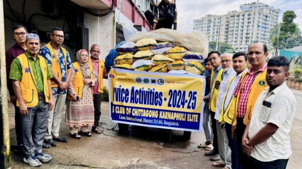ফেনী জেলার সোনাগাজী উপজেলাস্থ ৮নং আমিরাবাদ ইউনিয়নে বন্যাদুর্গত এলাকার বন্যায় ক্ষতিগ্রস্ত ২০০ পরিবারের জন্য খাদ্যসামগ্রী বিতরণ করছে আন্তর্জাতিক সেবা সংগঠন লায়ন্স ক্লাব অব চিটাগাং কর্ণফুলি এলিট। চট্টগ্রাম মহানগরীর দামপাড়ার গাফ্ফার