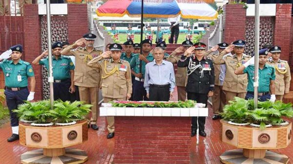 রাজারবাগ পুলিশ স্মৃতিসৌধে স্বরাষ্ট্র উপদেষ্টার শ্রদ্ধা