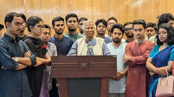 প্রধানমন্ত্রীর পদ থেকে পদত্যাগ করে শেখ হাসিনা ভারতে পালিয়ে যাওয়ার পর বাংলাদেশে ড. মুহাম্মদ ইউনূসের নেতৃত্বে অন্তর্বর্তীকালীন সরকার শপথ নিতে যাচ্ছে। বৃহস্পতিবার রাতে সাড়ে ৮টার দিকে ১৭ সদস্যের অন্তর্বর্তীকালীন এই