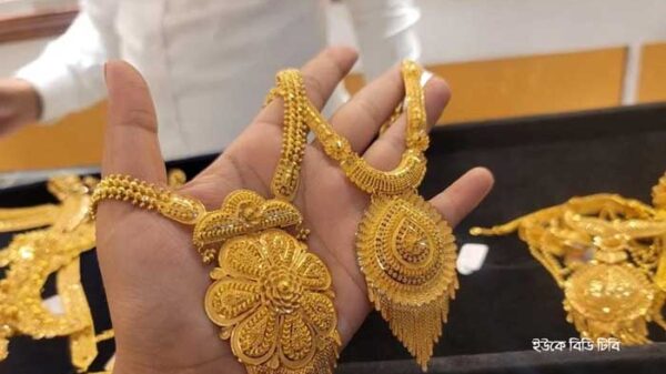 টানা তিন দফা দাম বাড়ানোর পর দেশের বাজারে সোনার দাম কমানোর সিদ্ধান্ত নিয়েছে বাংলাদেশ জুয়েলার্স অ্যাসোসিয়েশন (বাজুস)। ভরিতে ১ হাজার ৩৬৫ টাকা কমিয়ে ২২ ক্যারেটের এক ভরি সোনার দাম ১