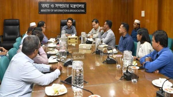 দ্বিপক্ষীয় স্বার্থসংশ্লিষ্ট বিষয়ে তথ্য ও সম্প্রচার এবং ডাক টেলিযোগাযোগ ও তথ্যপ্রযুক্তি মন্ত্রণালয়ের উপদেষ্টা নাহিদ ইসলামের সঙ্গে সচিবালয়ে কর্মরত সাংবাদিকদের সংগঠন বাংলাদেশ সেক্রেটারিয়েট রিপোর্টার্স ফোরামের (বিএসআরএফ) নেতারা বৈঠক করেছেন। বৈঠকে নেতৃত্ব