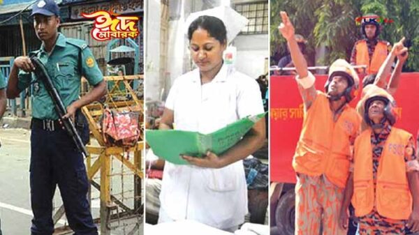 ঈদে প্রিয় মানুষকে কাছে পেয়ে সবাই আনন্দে মেতে উঠলেও এই উৎসবে ছুটি মেলে না হাজারো মানুষের। পেশাগত দায়িত্ব পালনে তৎপর থাকতে হয় তাদের। দায়িত্বের বোঝা নিয়ে উৎসব আনন্দের ঊর্ধ্বে থেকে