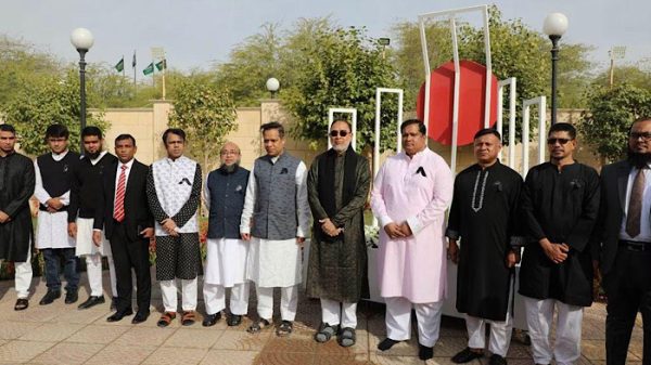 সৌদি আরবে যথাযোগ্য মর্যাদায় পালিত হলো মহান শহীদ দিবস ও আন্তর্জাতিক মাতৃভাষা দিবস। রাজধানী রিয়াদে অবস্থিত বাংলাদেশ দূতাবাসে নানা আনুষ্ঠানিকতার মধ্যদিয়ে দিবসটি পালিত হয়। দিবসটি উপলক্ষে দূতাবাস চত্বরে পতাকা অর্ধনমিত