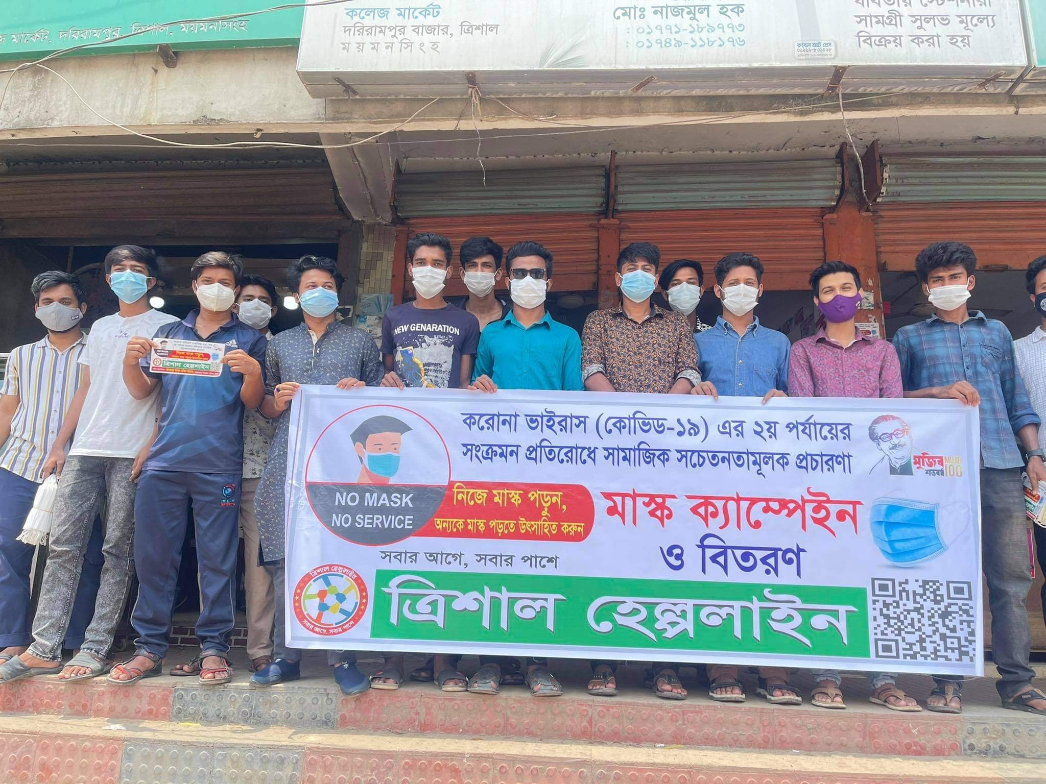 করোনা ভাইরাস মোকাবেলায় সচেতনতা মুলক স্টিকার ও মাস্ক বিতরণ করলো ত্রিশাল হেল্পলাইন