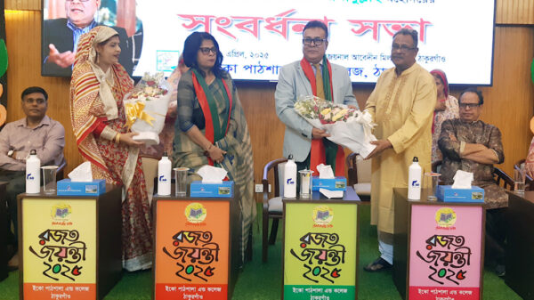 ঠাকুরগাঁওয়ে দেশবরেণ্য শিক্ষাবিদ, জাতীয় বিশ্ববিদ্যালয়ের উপাচার্য অধ্যাপক ড. এএসএম আমানুল্লাহকে ইএসডিও’র পক্ষ থেকে সংবর্ধনা প্রদান করা হয়েছে। শুক্রবার (১১ এপ্রিল) রাতে শহরের গোবিন্দনগরস্থ ইএসডিও’র প্রধান কার্যালয়ের জয়নাল আবেদীন মিলনায়তনে এ