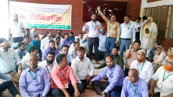 আদালতের কর্মচারীগণের বৈষম্য নিরসনসহ ২ দফা দাবিতে  বাংলাদেশ বিচার বিভাগীয় কর্মচারী এসোসিয়েশন ঠাকুরগাঁও জেলা শাখার পক্ষ থেকে কর্মবিরতি পালন করা হয়েছে।সোমবার (৫ মে) জেলা জজ আদালত ভবনের বারান্দায় সকাল ৯-১১