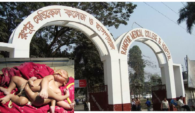 দিনাজপুর প্রতিনিধি: দিনাজপুরে চার হাত ও চার পা নিয়ে এক ছেলেশিশুর জন্ম হয়েছে। শুক্রবার ভোর ৫টায় বীরগঞ্জ উপজেলার একটি বেসরকারি হাসপাতালে শিশুটির জন্ম দেন এক নারী। পরে শিশুটিকে রংপুর মেডিকেল