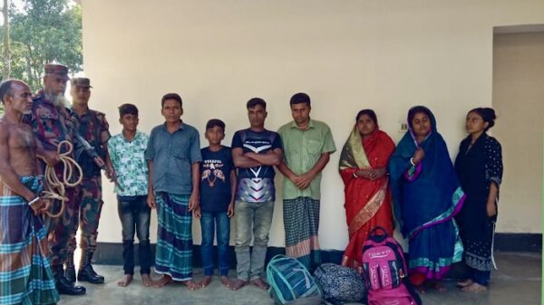 পঞ্চগড় জেলার তেঁতুলিয়া উপজেলার ভজনপুর সীমান্ত এলাকা দিয়ে ভারতে যাওয়ার সময় নারী ও শিশুসহ ৯ বাংলাদেশি নাগরিককে আটক করেছে বর্ডার গার্ড বাংলাদেশ (বিজিবি)। বুধবার (২৮ আগস্ট) গভীর রাতে উপজেলার ভজনপুর