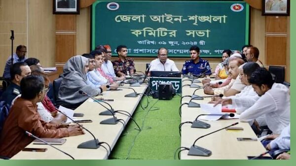 রবিবার (৯ জুন) পঞ্চগড় জেলা প্রশাসকের কার্যালয়ের সম্মেলন কক্ষে জেলা প্রশাসক, মোঃ জহুরুল ইসলামের সভাপতিত্বে জুন মাসের পঞ্চগড় জেলা আইন-শৃঙ্খলা কমিটির মাসিক সভা অনুষ্ঠিত হয়েছে। সভায় বিশেষ অতিথি হিসেবে উপস্থিত ছিলেন