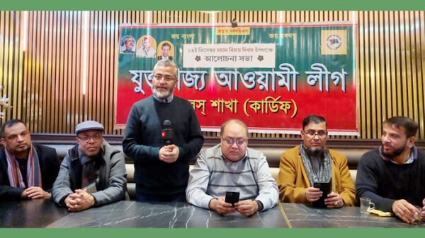 সন্ত্রাসবাদ জঙ্গিবাদ মুক্ত গনতান্ত্রিক মুক্তিযুদ্ধের চেতনায় অসাম্প্রদায়িক বাংলাদেশ বিনির্মাণের অঙ্গিকারে যুক্তরাজ্য আওয়ামী লীগ ওয়েলস শাখার উদ্যোগে যথাযোগ্য মর্যাদায বৃটেনের কার্ডিফ শহরে বাংলাদেশের ৫৪ তম মহাণ বিজয় দিবস উপলক্ষে এক আলোচনা