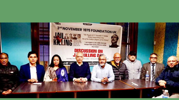 রবিবার (৩রা নভেম্বর) সন্ধ্যা ৭টায় পূর্ব লন্ডনের কমার্শিয়াল রোডে ‘৩রা নভেম্বর ১৯৭৫ ফাউন্ডেশন ইউকের’ উদ্যোগে আয়োজিত জেল হত্যাদিবসের আলোচনা সভা অনুষ্ঠিত হয়েছে। সভায় বক্তারা বলেন, ১৯৭৫ সালের ৩ নভেম্বর ঢাকাকেন্দ্রীয়