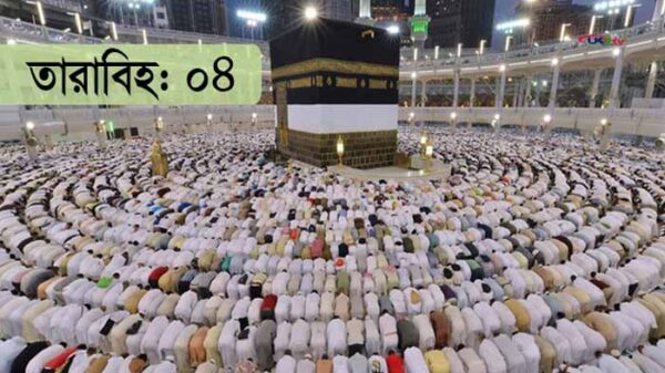 ১৪৪৪ হিজরির রমজান মাসের চতুর্থ তারাবিহ আজ। আজকের তারাবিহতে সুরা নিসার ৮৮ আয়াত তেলাওয়াত শুরু হবে। সুরা মায়েদার ৮২নং আয়াত পর্যন্ত তেলাওয়াত করা হবে। সে সঙ্গে ৬ পারার তেলাওয়াত শেষ