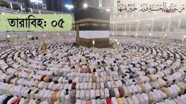 ১৪৪৪ হিজরির রমজান মাসের পঞ্চম তারাবিহ আজ। আজকের তারাবিহতে সুরা মায়িদার ৮৩নং আয়াত থেকে শেষ পর্যন্ত, সুরা আনআমসহ সুরা আ’রাফের ১১নং আয়াত পর্যন্ত পড়া হবে। মুমিন মুসলমানের ভালো কাজের দশগুণ