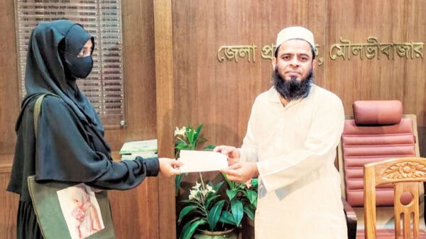 মৌলভীবাজার জেলার জেলা প্রশাসক মোঃ ইসরাইল হোসেন মানবিক সহায়তা হিসেবে ব্রেইন আক্রান্ত শিশু মিনহাজুর রহমানকে উন্নত চিকিৎসার জন্য ২৫ হাজার টাকা আর্থিক সহায়তা প্রদান করেছেন। মঙ্গলবার (২ সেপ্টেম্বর) সকালে জেলা