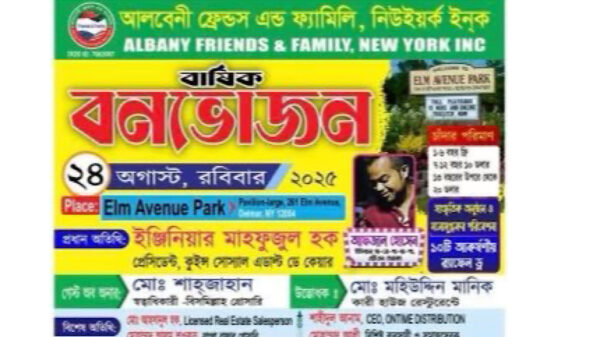 আলবেনী ফ্রেন্ডস এন্ড ফ্যামিলি নিউইয়র্কের বার্ষিক বনভোজন অনুষ্ঠিত হবে রবিবার (২৪ আগস্ট) নিউইয়র্ক ষ্টেট এর রাজধানীর ইলম এভিন্যপার্কে। বাষির্ক বণভোজনে প্রধান অতিথি হিসেবে উপস্থিত থাকবেন কুইন্স স্যোশাল এডল জে কেয়ার