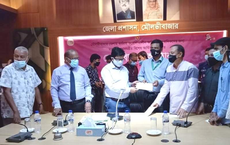 স্টাফ রিপোর্টার, মৌলভীবাজার: মৌলভীবাজার প্রেসক্লাব, ইমজা, সাংবাদিক ফোরাম ও অনলাইন প্রেসক্লাবের ৪৯ জন সাংবাদিক পেলেন বাংলাদেশ সাংবাদিক কল্যাণ ট্রাস্ট থেকে দ্বিতীয় পর্যায়ের প্রধানমন্ত্রীর বিশেষ আর্থিক প্রণোদনার চেক। বৃহস্পতিবার দুপুরে জেলা