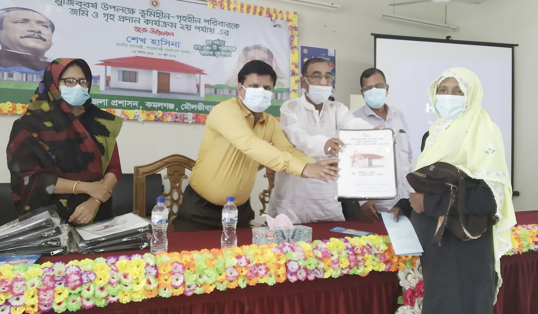 মোঃ সুমন আহমদ (কমলগঞ্জ): মৌলভীবাজারের কমলগঞ্জে মুজিব শতবর্ষ উপলক্ষে প্রধানমন্ত্রীর বিশেষ উপহার হিসেবে আশ্রায়ণ-২ প্রকল্পের আওতায় দ্বিতীয় ধাপে ১৫৬টি অসহায়, ভুমিহীন ও গৃহহীন পরিবারের মধ্যে আনুষ্টানিকভাবে কাগজপত্রাদি হস্তান্তর করা হয়েছে।