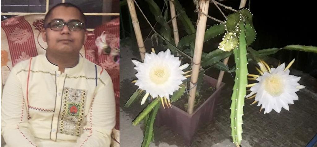 স্টাফ রিপোর্টার: গত রাতে মৌলভীবাজার শহরের পাগুলিয়া আবাসিক এলাকার স্বপ্নীল হাউজে ফুটেছে দূর্লভ প্রজাতির নাইট কুইন ফুল।সারাবিশ্বে পরিচিত ‘নাইট কুইন’ হিসেবে মিষ্টি মেনাহারিণী সুবাস, দুধসাদা, স্নিগ্ধ ও পবিত্র পাপড়ি আর সৌভাগ্যের প্রতীক হিসেবে এলেও রাতের রানী সে।কিন্তু যে রাতে নিজেকে মেলে ধরে প্রকৃতির কাছে, সে রাতেই আবার ঝড়ে পরে।এই একটি ফুলের জন্য বছরের পর বছর অপেক্ষা করতে হয় ফুল প্রেমীদের।আমাদের দেশে দুর্লভ প্রজাতির ফুল হিসেবেই গণ্য করা হয় ‘ নাইট কুইনকে’। জানা যায়, গতবছর কভিড ১৯ এর প্রাদুর্ভাব দেখা দিলে স্কুল বন্ধ থাকার কারনে শহরের পাগুলিয়া আবাসিক এলাকার স্বপ্নীল হাউজে বাসার ছাদে শখের বশে গাছটি লাগান মৌলভীবাজার সরকারি স্কুলের নবম শ্রেণীর ছাত্র এমদাদ আলম আদিব(১৪)। দীর্ঘ ১ বছর তিনি পরিচর্যা করেন গাছটির। গত রাতে নিজেই তিনি ক্যামেরাবন্দি করলেন ফুল ফোটার দৃশ্য।যারা রাতের রানীর সৌন্দর্যে আর তার ক্ষণ অস্তিত্ব নিয়েই এতদিন জানতেন না, তাদের জন্য এই দৃশ্য এক বিরল দৃশ্য বটে।বিরল ক্যাকটাসের ফুল এ নাইট কুইনের (বৈজ্ঞানিক নাম peniocereus greggii) আদি নিবাস আমেরিকার দক্ষিণাঞ্চল এবং মেক্সিকোতে হলেও বাংলাদেশের বিভিন্ন জায়গায় মিলে এই গাছ।তবে ফুলের দেখা খুব কম মানুষের ভাগ্যেই হয়।তবে সাদারঙের রাজকীয় আবরনের ফুলটির চির স্নিগ্ধ, শুভ্রপবিত্র রূপই নাইট কুইনের সৌন্দর্যের মূল রহস্য।তাও আবার সেই রাতের কয়েক ঘন্টার অন্ধকারেই হয় তার জীবনাবসান। এক প্রশ্নের জবাবে আদিব জানান,তার দাদা অবসরপ্রাপ্ত সরকারী কর্মকর্তা ডা: মো: আব্দুর রউফ এর অনুসরণ করে ও তার পিতা বিশিষ্ট ব্যবসায়ী, ইউ কে বিডি টিভি.কম এর সম্পাদক কাওছারুল আলম রিটন এর অনুপ্রেরনায়তিনি অবসর সময়ে শখের বসে বাসার ছাদে বিভিন্ন ফুল ও ফলমুল এর গাছ রুপন করেন।তার অবসর সময় কাটে এসব গাছ এর পরিচর্যা করে। নাইট কুইন ফুল ফুটার ব্যাপারে অনুভুতি ব্যক্ত করে আদিব বলেন, আমি সার্থক ফুলটিকে নিজের চোখের সামনে ফুটতে দেখতে পেরে।বিকালের দিকে যখন বাসার ছাদে যাই হঠাৎগাছটির কলি চোখে পরে।দীর্ঘদিনের অপেক্ষার পর সন্ধ্যার দিকে ফোটে নাইটকুইন। শীঘ্রই আরেকটি ফুল ফুটবে বলে আমি আশাবাদী।