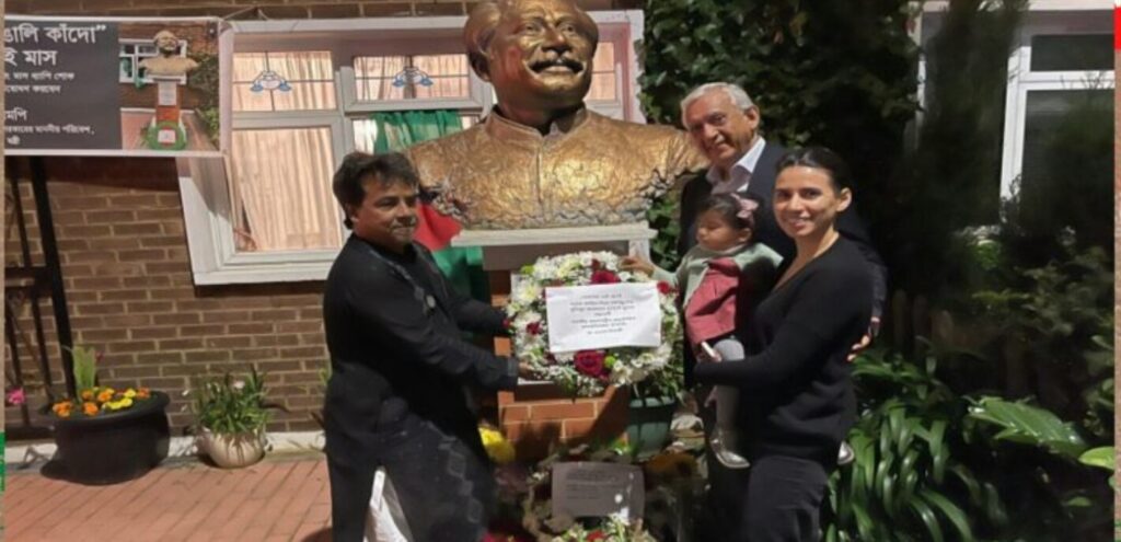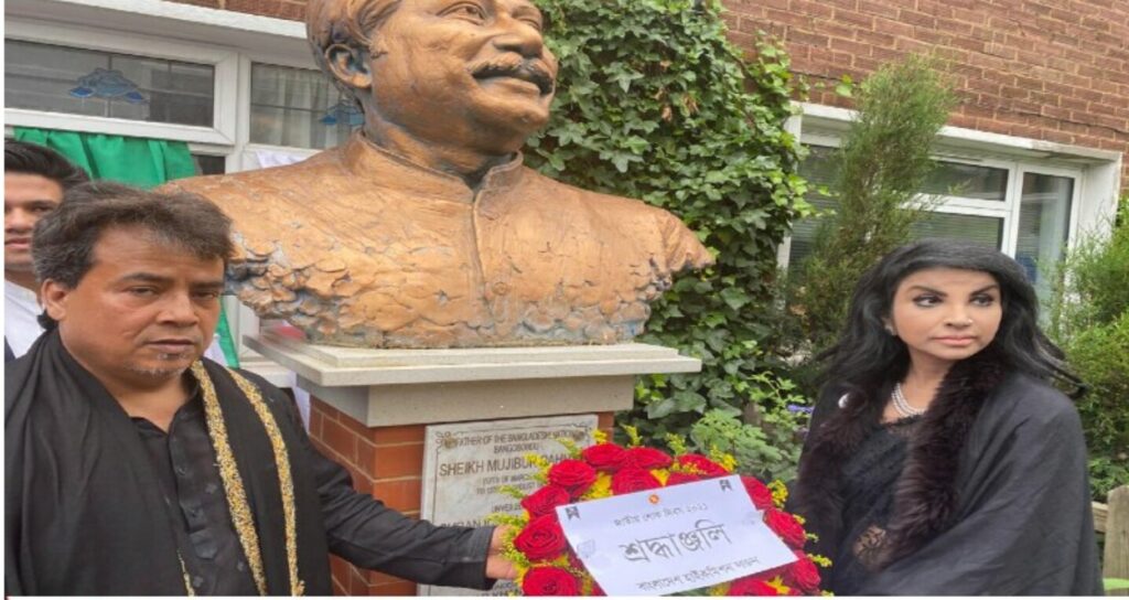প্রসঙ্গত পরিবেশ,বন ও জলবায়ু পরিবর্তন মন্ত্রী মো: শাহাব উদ্দিন এমপি গত ৩০ জুলাই , শুক্রবার বিকেলে ইস্ট লন্ডনের সিডনি স্ট্রিটে স্থাপিত বাংলাদেশের স্থপতি জাতির পিতা বঙ্গবন্ধু শেখ মুজিবুর রহমান এঁর ভাস্কর্যে পুষ্পস্তবক অর্পণের মাধ্যমে মাসব্যাপী ‘কাদো বাঙালি কাদো’ শিরোনামের সিডনি স্ট্রিটস্থ লন্ডন আওয়ামী লীগের যুগ্ম সম্পাদক ও বাংলাদেশের স্থপতি শেখ মুজিবুর রহমানের ভাস্কর্য র প্রতিষ্ঠাতা আফসার খান সাদেক উদ্যোগে জাতীয় শোক দিবস ও মাসব্যাপী কর্মসূচির উদ্বোধন করেন।