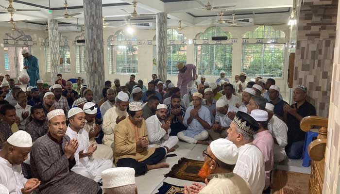 মৌলভীবাজার শহরের পশ্চিম বাজার জামে মসজিদে শুক্রবার আসরের নামাজ শেষে মিলাদ ও দোয়া মাহফিলে জেলা বিএনপির সভাপতি ও সাবেক এমপি এম নাসের রহমান প্রধান অতিথি হিসাবে উপস্থিত ছিলেন।