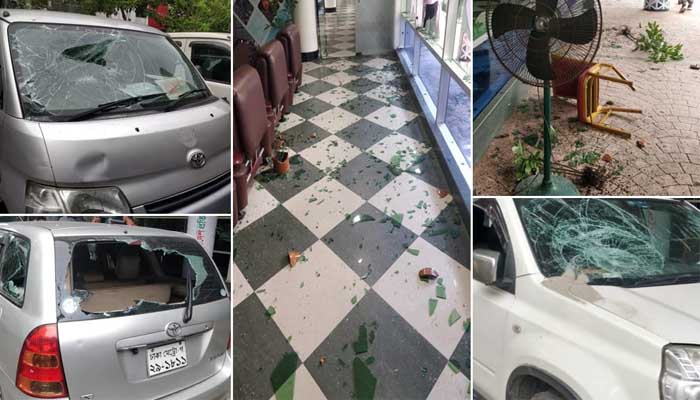 এরপর তারা ভবনের সামনে রাখা ২০ থেকে ২৫টি গাড়িতে ব্যাপক ভাংচুর চালায়। এছাড়া ভবনের কাঁচের দেয়াল ও দরজা ভেঙ্গে ফেলে। এসময় গোটা মিডিয়া হাউজে চরম আতঙ্ক ছড়িয়ে পড়ে। কিছুক্ষণ পর তারা ঘটনাস্থল ত্যাগ করে।