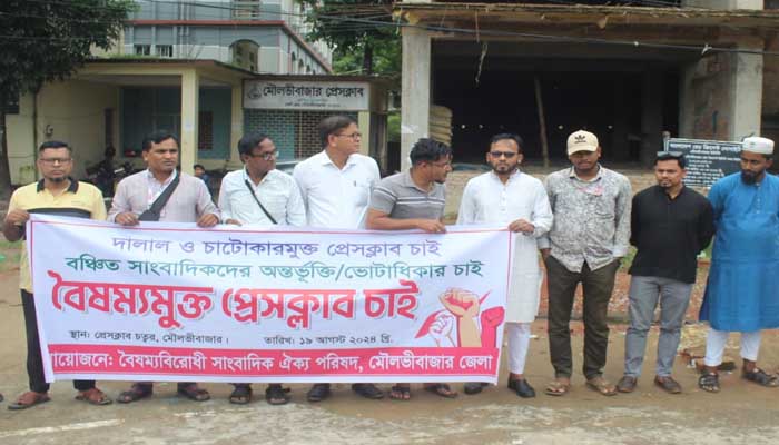 এ সময় বক্তারা বলেন, জাতীয় প্রেসক্লাব জাতীয় পর্যায়ের সাংবাদিকদের একটি সংগঠন, মৌলভীবাজার প্রেসক্লাব জেলা পর্যায়ের সাংবাদিকদের সংগঠন। কিন্তু দুঃখজনক হলেও সত্য মৌলভীবাজারস্ত প্রেসক্লাব দীর্ঘদিন যাবত বিভিন্ন পত্রিকায় নিয়োজিত সংবাদদাতাদের সদস্যপদ লাভের সুযোগ থেকে বঞ্চিত করা হচ্ছে। যা এক ধরনের বৈষম্যমূলক আচরণ বিরাজমান। বর্তমান অন্তবর্তীকালীন সরকার বৈষম্যবিরোধী ছাত্র আন্দোলনের ফসল।