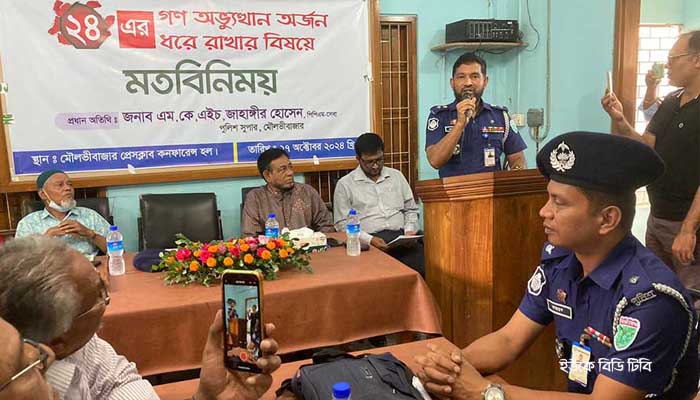 ২০২৪ এর গণ অভ্যুত্থ্যান ধরে রাখার বিষয়ে পুলিশ সুপারের সাথে মৌলভীবাজার প্রেসক্লাবের সাংবাদিকদের মতবিনিময় সভা অনুষ্ঠিত হয়েছে।