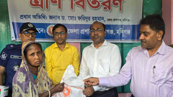 ত্রাণ বিতরণকালে উপস্থিত ছিলেন নবীগঞ্জ উপজেলা নির্বাহী কর্মকর্তা (ইউএনও) মো. রুহুল আমিন, সহকারী কমিশনার (ভ‚মি) শাহীন দেলোয়ার, নবীগঞ্জ থানার অফিসার ইনচার্জ (ওসি) শেখ মো. কামরুজ্জামান, উপজেলা সিনিয়র মৎস্য কর্মকর্তা মো. আসাদ উল্লাহসহ প্রশাসনের অন্যান্য কর্মকর্তা ও স্থানীয় গণ্যমান্য ব্যক্তিবর্গ। এরআগে বন্যা কবলিত গালিমপুর, মাধবপুর ও পশ্চিম মাধবপুর এলাকা পরিদর্শন করেন জেলা প্রশাসক ড. মো. ফরিদুর রহমান।