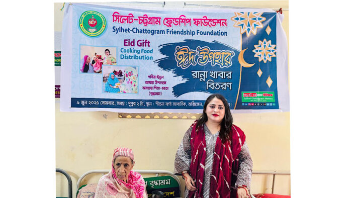 সামাজিক ও মানবিক সংগঠন সিলেট-চট্টগ্রাম ফ্রেন্ডশিপ ফাউন্ডেশনের আয়োজনে চট্টগ্রামের অক্সিজেন এলাকার শীতলঝর্ণা আবাসিক এলাকায় অবস্থিত বেওয়ারিশ মানবসেবা বৃদ্ধাশ্রমে আশ্রিত মা বাবাদের মাঝে পবিত্র ঈদ উল আযহা উপলক্ষে সোমবার (৯ জুন) রান্না করা খাবার বিতরণ করা হয়। খাবারের মধ্যে ছিল গরুর মাংস, বাকরখানি, চাউলের রুটি, পরোটা ও ফল।