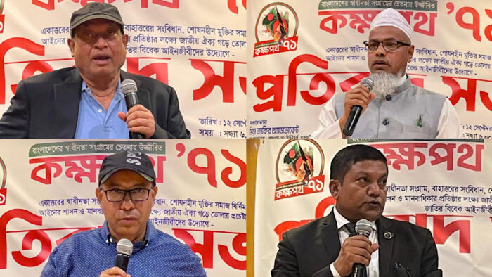 বাংলাদেশের বর্তমান অরাজক পরিস্থিতির পরিপ্রেক্ষিতে মুক্তিযুদ্ধ, ৭২ র সংবিধান, আইনের শাসনের প্রতিষ্ঠা ও আদালত এবং আইনজীবীদের মর্যাদা রক্ষার্থে- কক্ষপথ -৭১ এর আয়োজনে নিউইয়র্কের বাংগালি অধ‍্যশিত জুইস সেন্টারে এক প্রতিবাদ সমাবেশ আনুষ্ঠিত হয়েছে।