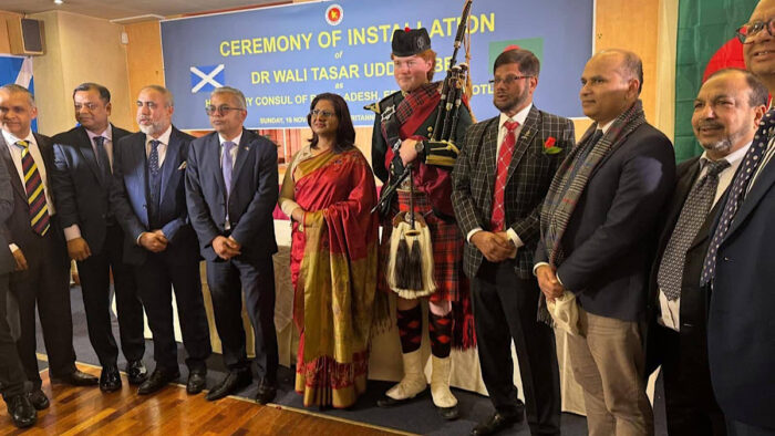 দীর্ঘ ১৬ বছর পর স্কটল্যান্ডে বাংলাদেশের অনারারী কনসাল হিসাবে নিযুক্ত হলেন ড. ওয়ালী তছর উদ্দিন এমবিই, ডিবিএ, ডি.লীট। রবিবার (১৬ নভেম্বর) এডিনবরাস্থ ব্রিটানিয়া স্পাইস রেষ্টুরেন্টে সিরিমনি অব ইনন্সটলেশন অভিষেক অনুষ্ঠিত হয়েছে।