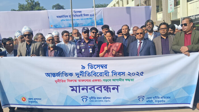 ঠাকুরগাঁও জেলা প্রশাসনের আয়োজনে “দুর্নীতির বিরুদ্ধে তারুণ্যের একতা; গড়বে আগামীর শুদ্ধতা” এ স্লোগানের আঙ্গিকে দুর্নীতি বিরোধী দিবস উপলক্ষে বর্ণাঢ্য র্যালি ও আলোচনা সভা অনুষ্ঠিত হয়েছে। জেলা প্রশাসন কার্যালয় চত্বর থেকে র্যালিটি বের হয়ে শহরের বিভিন্ন সড়ক প্রদক্ষিণ করে। পরে জেলা প্রশাসন কার্যালয়ের সম্মেলন কক্ষে আলোচনা সভা অনুষ্ঠিত হয়।