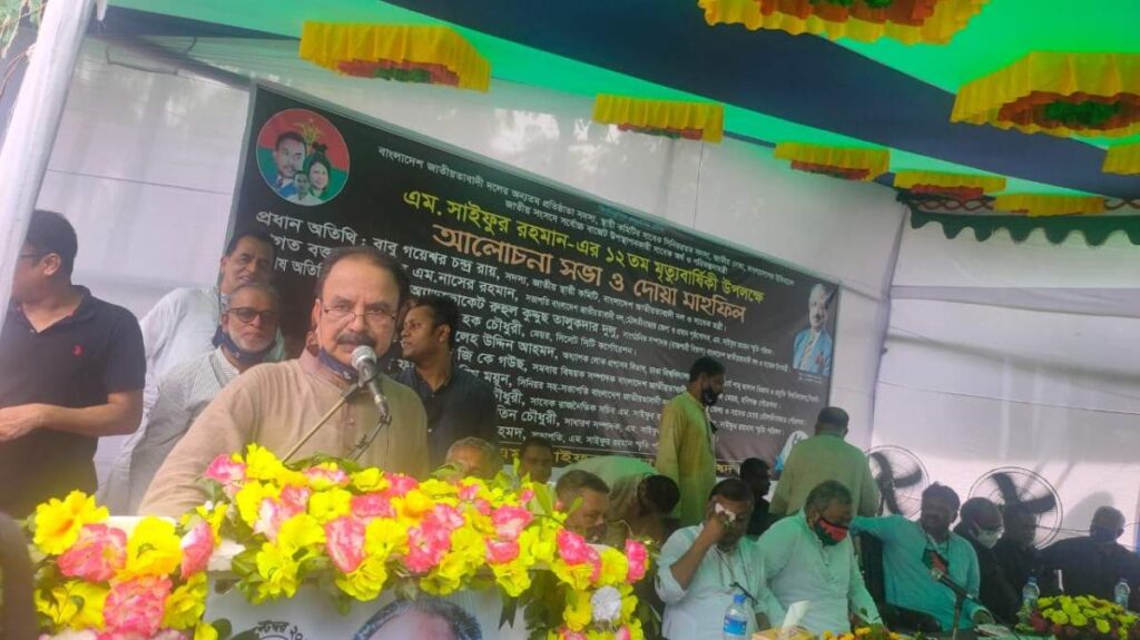রোববার (৫ সেপ্টেম্বর) সকালে সাবেক অর্থ ও পরিকল্পনামন্ত্রী, বিএনপির স্থায়ী কমিটির সদস্য এম সাইফুর রহমানের ১২ তম মত্যুবার্ষিকী উপলক্ষে মরহুমের গ্রামের বাড়ি মৌলভীবাজার সদর উপজেলার বাহারমর্দনে স্মৃতি পরিষদ আয়াজিত আলাচনা সভায় প্রধান অতিথির বক্তব্যে এ কথা বলেন।